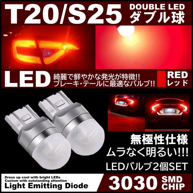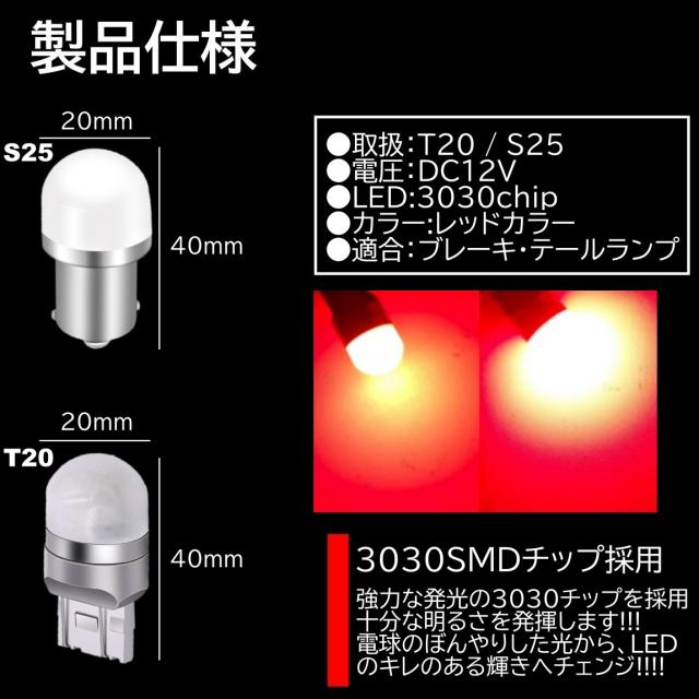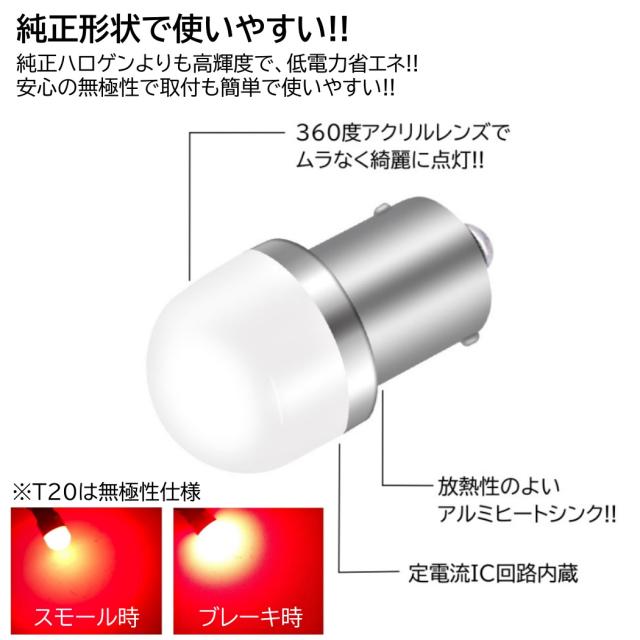 アクリルレンズ ムラなく発光 爆光LED S25 T20 ダブル シングル ブレーキランプ ストップランプ テールランプ 赤 レッド 無極性 2個