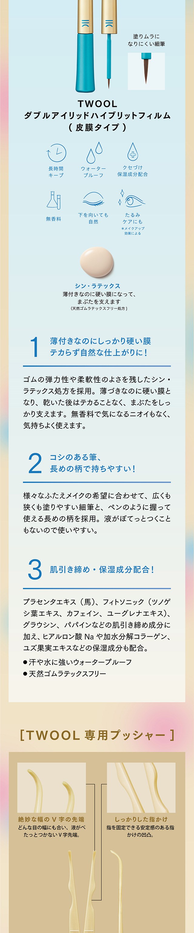 粧美堂 TWOOL トゥール 皮膜タイプ ダブルアイリッドハイブリットフィルム 二重コスメ 二重 ふたえ アイプチ アイメイク ナチュラルメイク 簡単 プッシャー付き