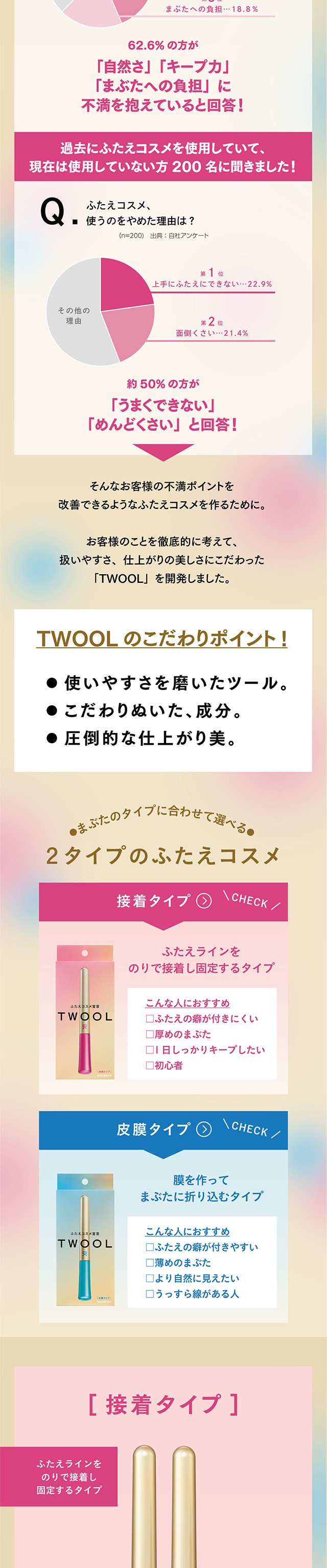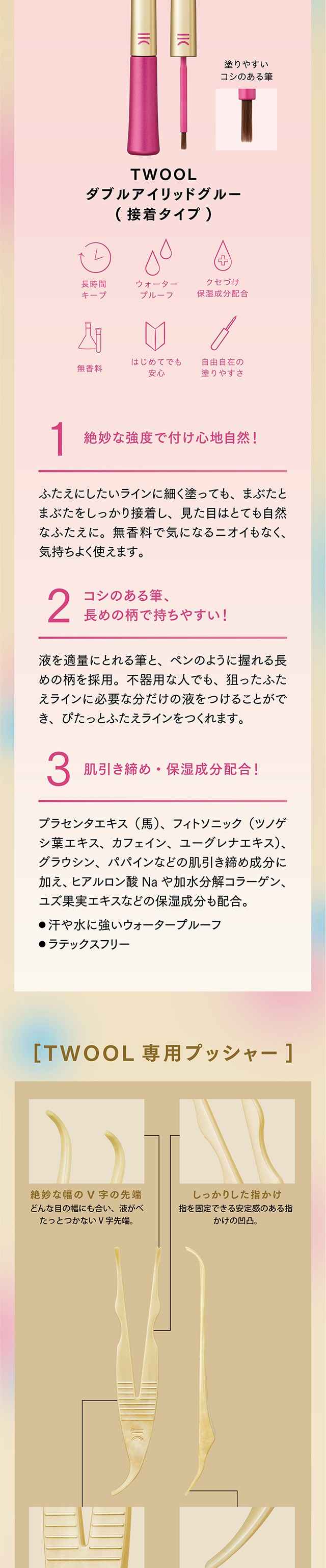 粧美堂 TWOOL トゥール 接着タイプ ダブルアイリッドハイブリットフィルム 二重コスメ 二重 ふたえ アイプチ アイメイク ナチュラルメイク 簡単 プッシャー付き