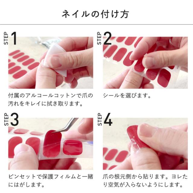 このネイルシールは多少の伸縮性があり、極端に引き延ばして貼ると色味が変わってしまうことがあります。
