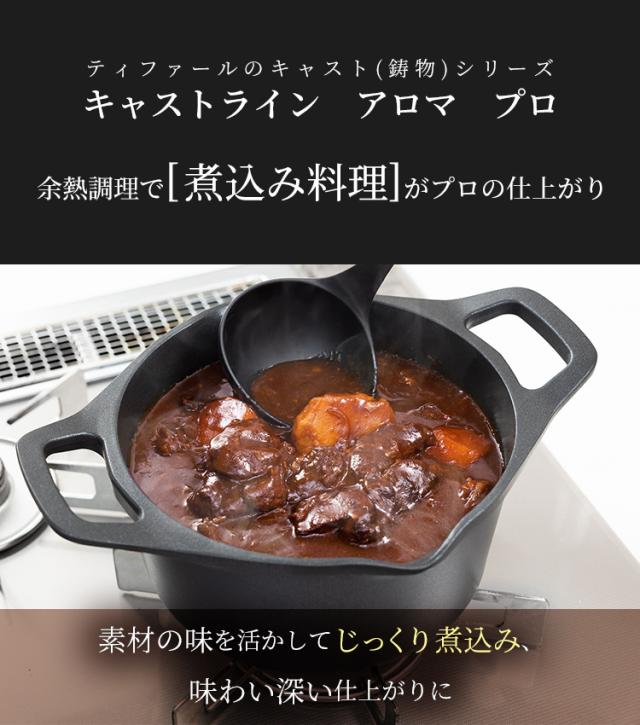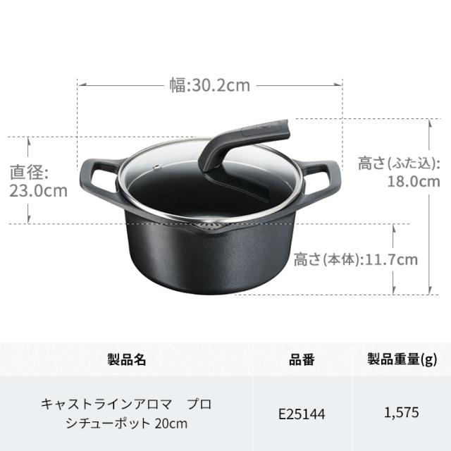 キャストライン アロマ プロ シチューポット 両手鍋 20cm ガラス蓋付 E25144 ティファール 軽さ 使いやすさ 蓄熱性 アルミ製鋳造 T-fal 送料無料