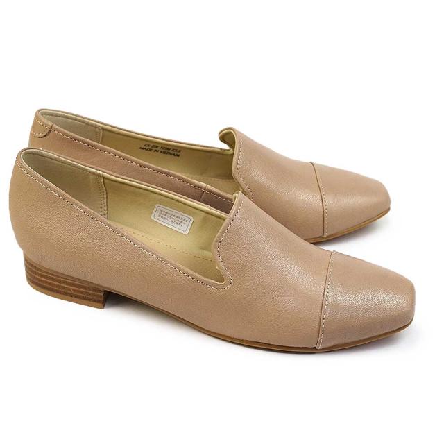 本底の返りの良さにこだわった甲深スリッポン。今までよりもソールの硬度を柔らかくし、もともと返りの良い 半中底ストローベル製法との組み合わせで返りの良さを実現。 その効果で踵がストレスなくついてきます。スクエア木型に、シンプルな一文字の組み合わせ。デザインは定番的ですが、デイリーに使える綺麗めカジュアルシューズです。