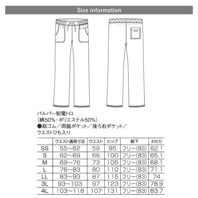 ■機能:総ゴム、両脇ポケット、後ろ右ポケット、ウエストひも入り