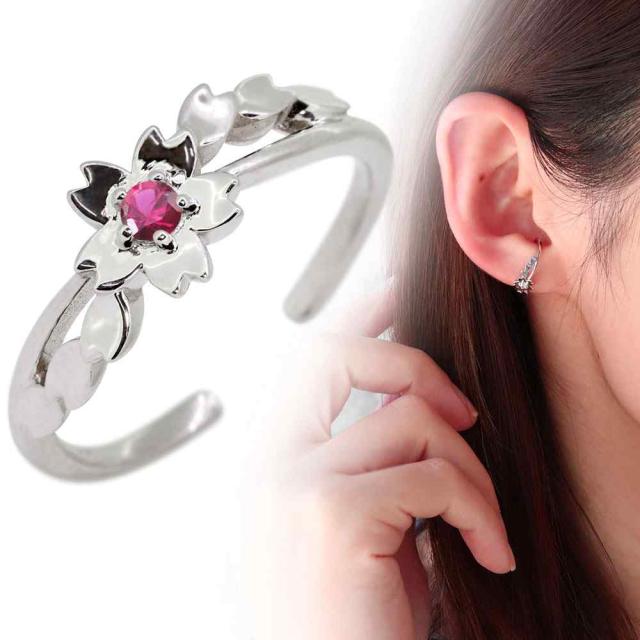 ノンホールピアス 桜 さくら イヤーカフ サクラ レディース プラチナ 片耳 ルビー