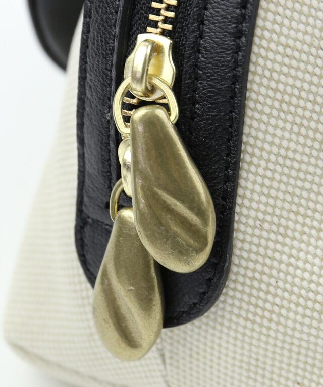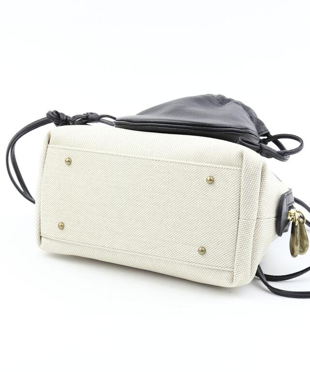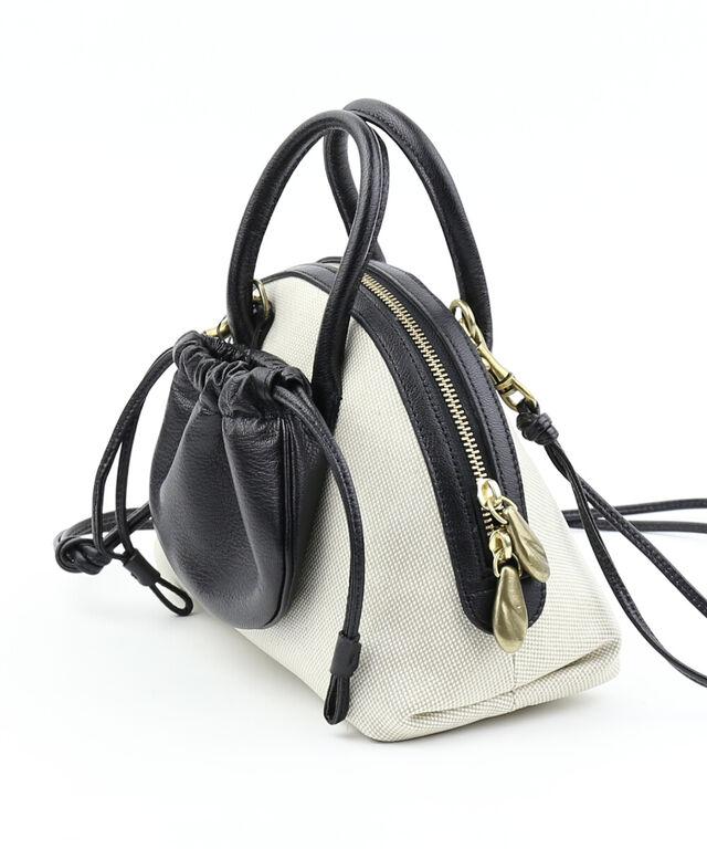 配色は生成りベースにブラックの革、グレージュベースにオイスターホワイトの革の2色展開。