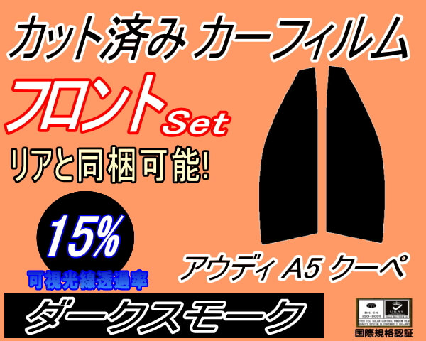 フロント (s) アウディ A5 クーペ (15%) カット済みカーフィルム 運転席 助手席 三角窓 左右セット スモークフィルム フロントドア 車種別 スモーク 車種専用 成形 フイルム 日よけ 窓 ガラス ウインドウ 紫外線 UVカット F5CYRF アウディ