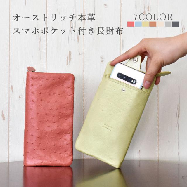 スマホが入る 長財布 オーストリッチ 本革 レディース ラウンドファスナー 軽い 大容量 パール加工 財布 可愛い レザー 牛革 スマホ 収納 ポケット スマホポーチ 多収納 光沢 軽量 駝鳥 革 大人 女性 人気 風水 縁起 母の日 ギフト 送料無料