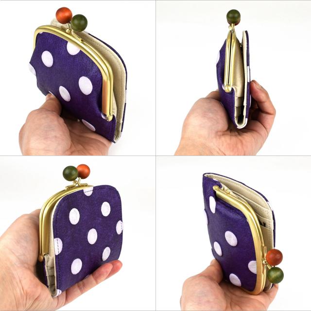 名称:innocent Sac イノセントサック 革友禅 ドット柄 丸木玉がまぐち二つ折り財布/がま口ウォレット/ハーフウォレット