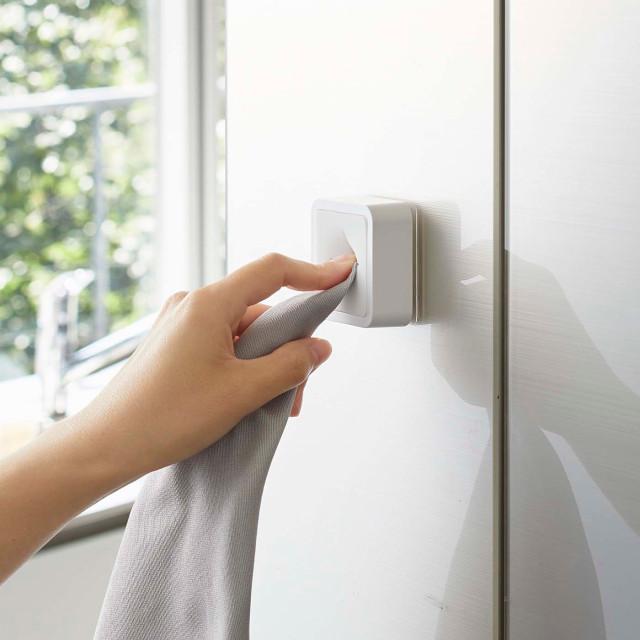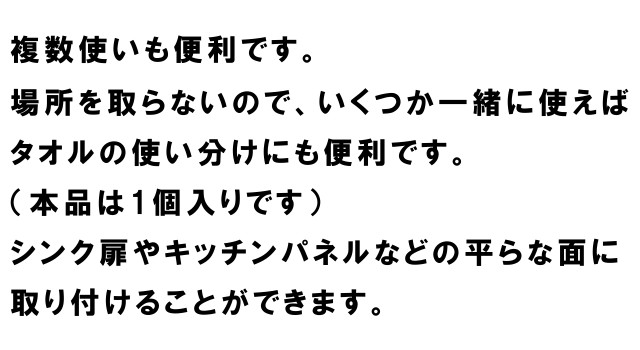 シンク扉やキッチンパネルなどのマグネットが付かない平らな面に取りつけることができます。
