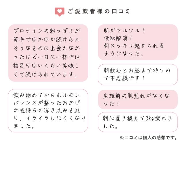 | 商品説明 | 不足した“女性ホルモン”を手軽に補充できる 「WITH SOY Woman's Protein 」 時間がない。でも綺麗になりたい! WITH SOY Woman's Protein は綺麗になりたい30代以上の女性に 届けたい美容成分入りソイプロテインです。 女性の美容成分入りのソイプロテイン ソイプロテインの原料である大豆には女性ホル モンと似た働きを持つ植物性エストロゲンが含 まれています。 またホルモンバランスを整える効果が期待でき、 年齢と共に不足してしまう女性ホルモンを手軽に補充することができます。 ビタミン+鉄分+フィッシュコラーゲンなど配合 キレイ作りに必要不可欠なビタミンやミネラル。 特に女性にとって大切な鉄分を配合しています。 鉄分が不足すると肌にハリがなくなり、シワの原因になることもあります。 またコラーゲンも配合されていて、女性らしいぷるっとしたもちもちお肌には 欠かせない成分になります。 続けやすさに、徹底的にこだわったソイプロテイン プロテインと聞くと、ダマになりやすい。粉っぽい。飲みにくい。 というイメージのある方が多いと思います。 WITH SOY BeautyProteinは粉っぽさもなくすぐ溶ける! また味は”もういっぱい飲みたくなる美味しさ”で、お子様にも美味しく飲んでいただけますのでプロテインに苦手意識のある女性に飲んでいただきたいです。 ■味 チョコレート味 ■栄養成分 たんぱく質(植物性)・フィッシュコラーゲン・鉄分・シールド乳酸菌・カルシウム・マグネシウム・ビタミンミックス |
