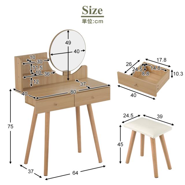 【新作記念】ドレッサー 化粧台 コンパクト デスク スツール付き 椅子付き 収納付き 可愛い おしゃれ メイク台 化粧台 北欧 鏡台 姫 幅80cm 鏡 ミラー 引き出し付 ホワイト 白 ナチュラル