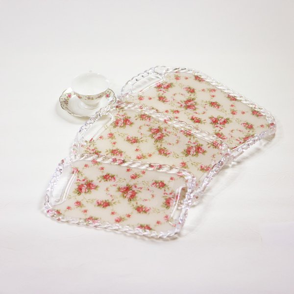 【商品名】 フルーツトレー 【3サイズ1セット】 アクリル樹脂 滑り止め加工 No18 ローズ12セット 【ジャンル・特徴】 かわいいバラ柄のトレー/お盆