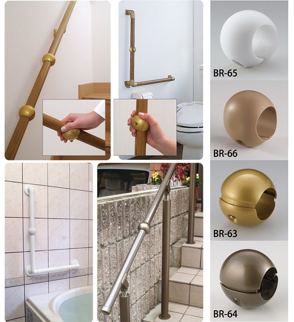 ・横や斜めに取り付ける手すりはもちろん、タテ型の手すりには、どの角度からでもつかみやすいボール形が最適です。