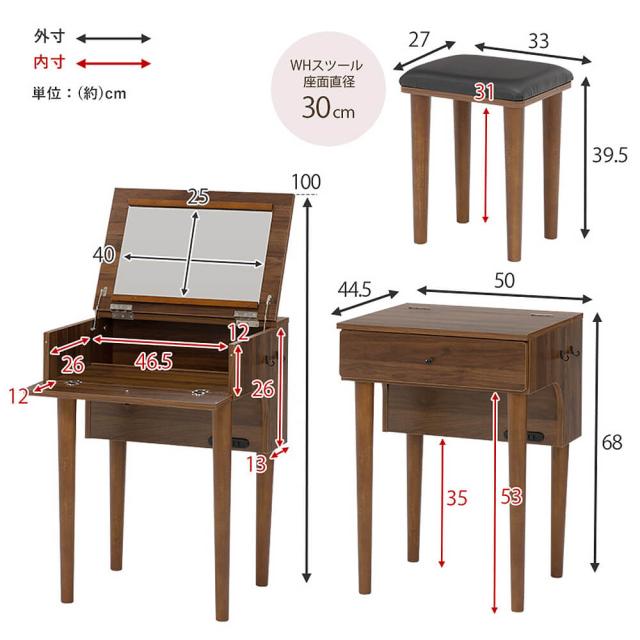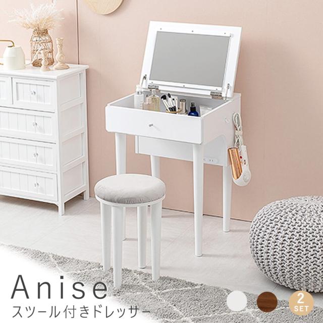 Anise(アニス)スツール付きドレッサー 2口コンセント付き コンセント テーブルドレッサー スツール 2点セット デスク