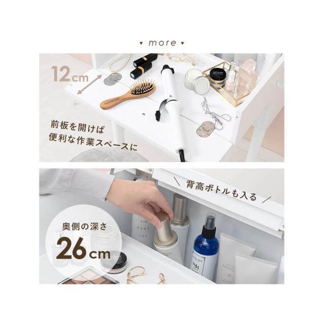 奥側には26cmの深さがあるので、背の高めの化粧水などのボトル類の収納にも困りません。