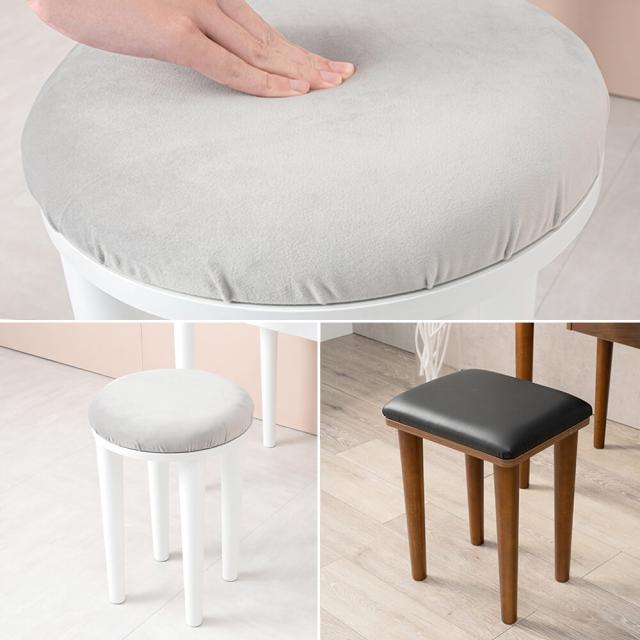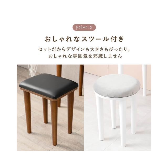 また、ダークブラウンにはスクエアタイプ、ホワイトにはラウンドタイプのスツールがついています。