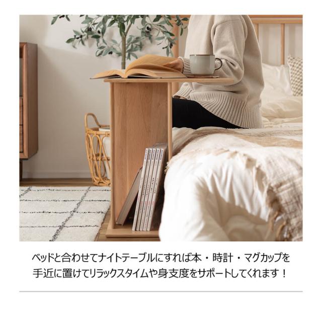 ベッドと合わせてナイトテーブルにすれば本・時計・マグカップを手近に置けてリラックスタイムや身支度をやさしくサポート。