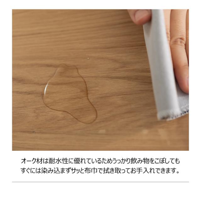 オーク材は耐水性に優れているためうっかり飲み物をこぼしてもすぐには染み込まずサッと布巾で拭き取ればシミになる心配もございません。