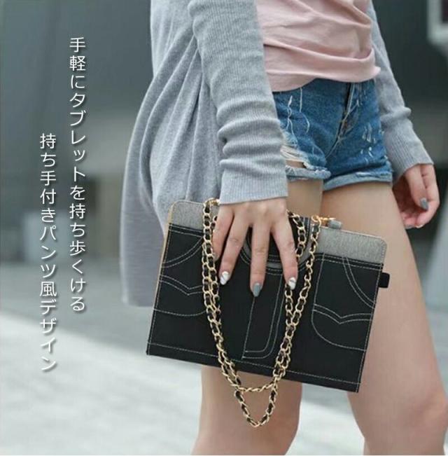 ■ 手軽にタブレットを持ち歩くける 持ち手付きパンツ風デザイン。