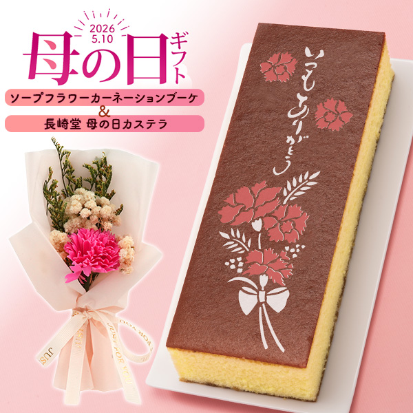 母の日ギフト 長崎堂カステラ & ソープフラワー お菓子とお花セット 石鹸のお花とスイーツセット お菓子 洋菓子 造花 カーネーション 和菓子 贈り物 花とセット メッセージカード付き いつもありがとう 常温 人気プレゼント 予約 早割 送料無料