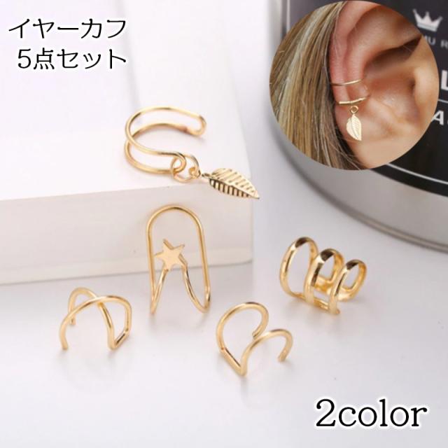 イヤーカフ 5点セット イヤークリップ イヤリング レディース 女性用 アクセサリー ノンホール シンプル 輪っか 小さめ リン