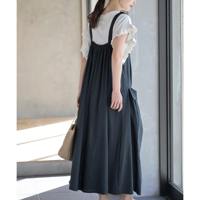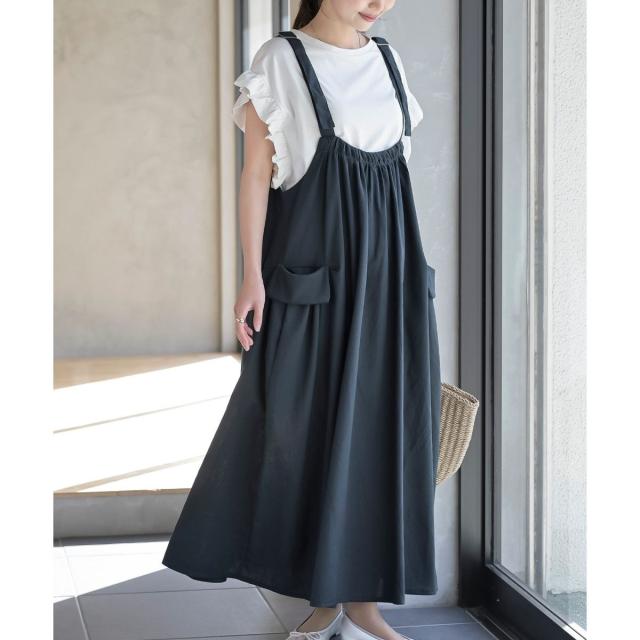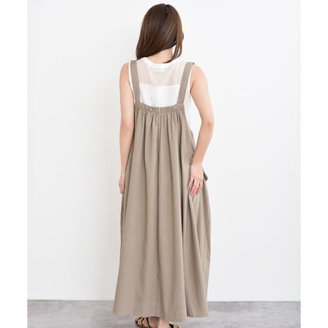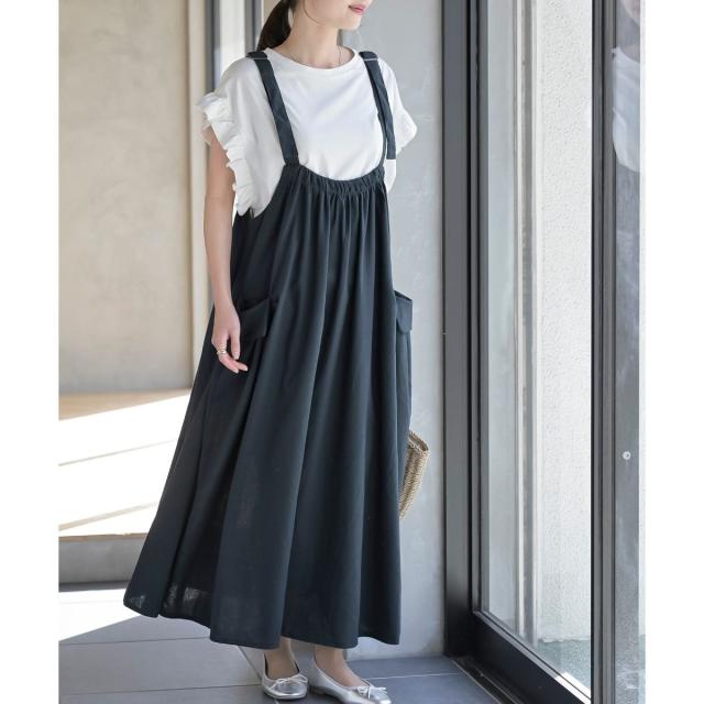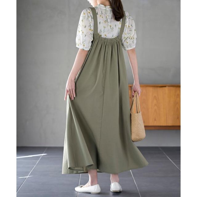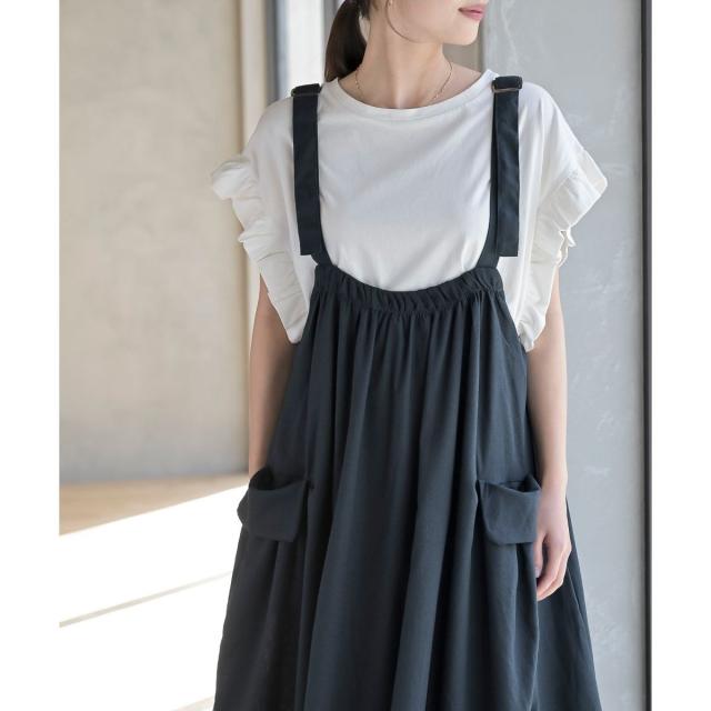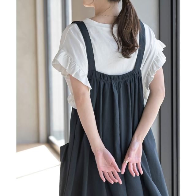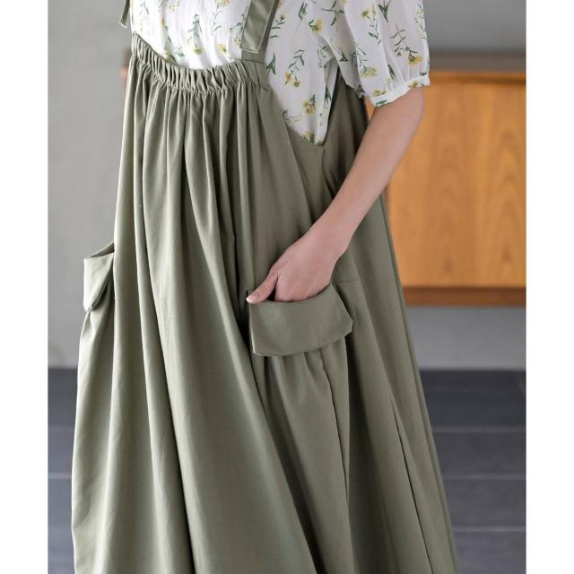 さらっとしたコットンリネン素材が爽やかなジャンパースカート。