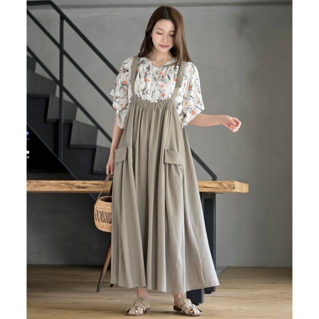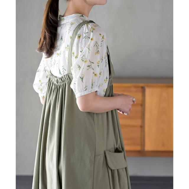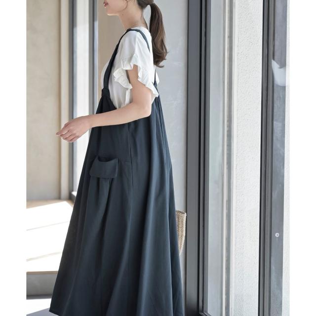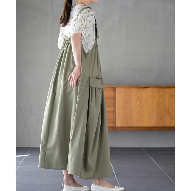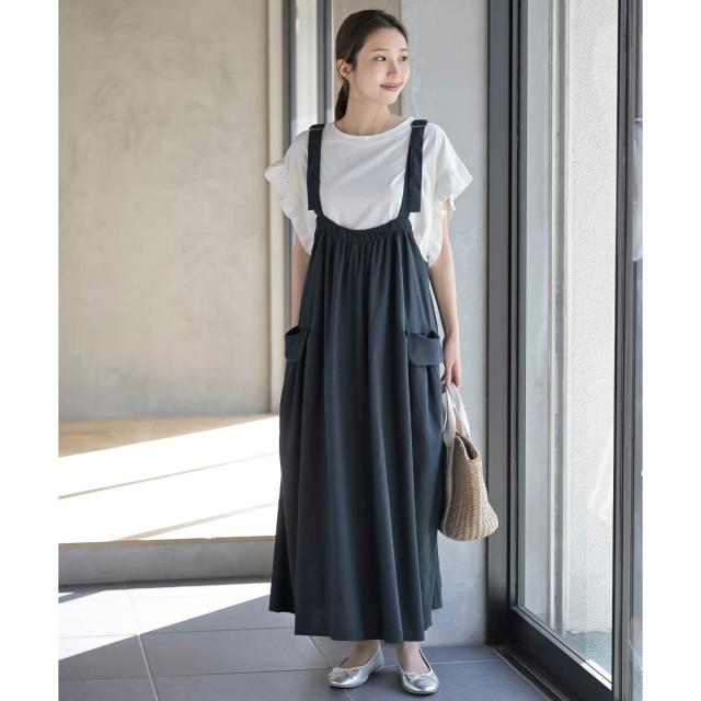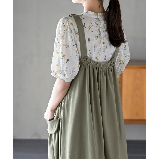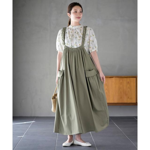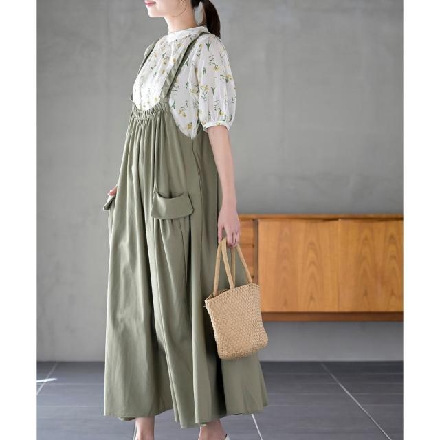 さらっとしたコットンリネン素材が爽やかなジャンパースカート。