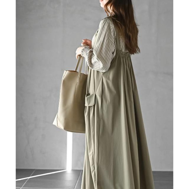 爽やか素材のジャンスカワンピ