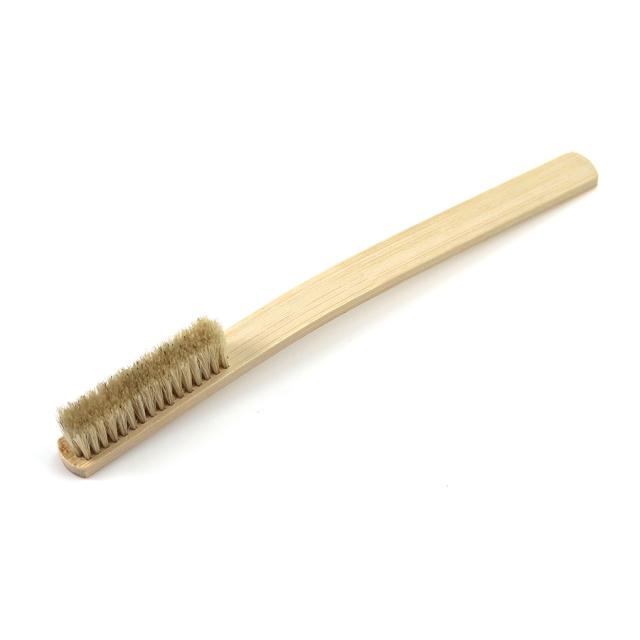 時計工具 F20296 ◆腕時計のケースやベルトに詰まった汚れやホコリを落としていただくのにご使用いただる豚毛のブラシになります。革製品のお手入れにもご使用いただけます。持ち手は竹で持ちやすいようにカーブしております。