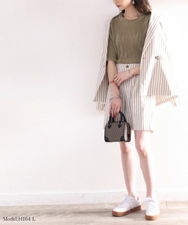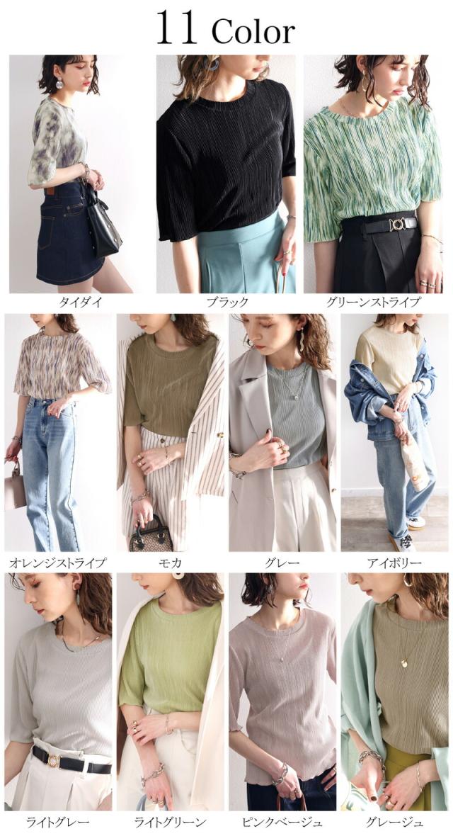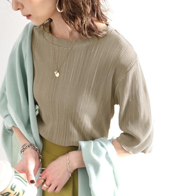 冬新作 クラシカルエルフ レディース 体型カバー トップス 大きいサイズ カットソー 5分袖 ミニプリーツ UV 半袖 5分袖 メロー リブ ブラウス ce0420067