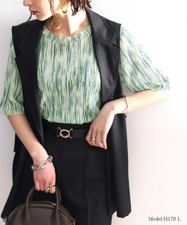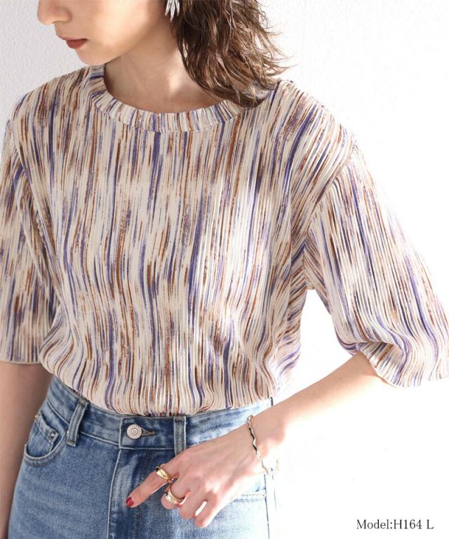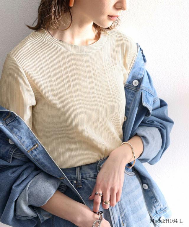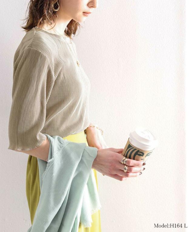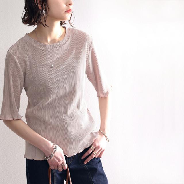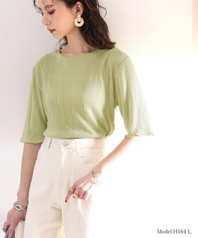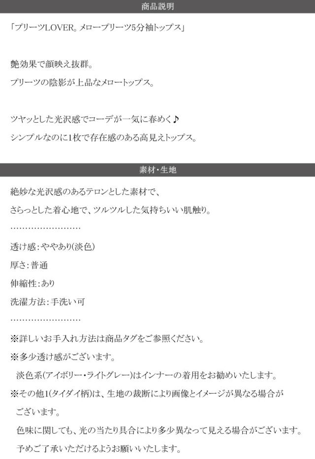 ★プリーツLOVER。メロープリーツ5分袖トップス★