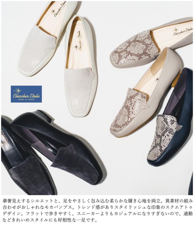 chercher ETOILE シェルシェエトワール モカパンプス SP2596 日本製 本革 3E 幅広 ローヒール パンプス モカシン 痛くない 通勤 歩きやすい
