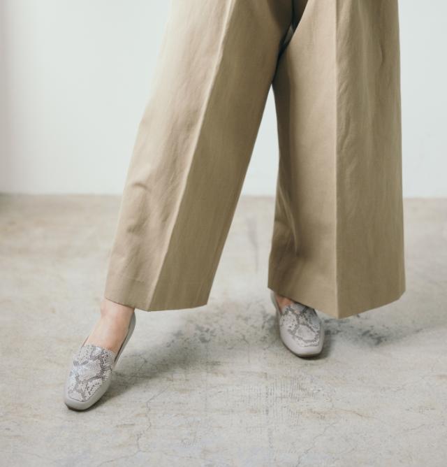 フラットで歩きやすく、スニーカーよりもカジュアルになりすぎないので、通勤などきれいめスタイルにも好相性な一足です。