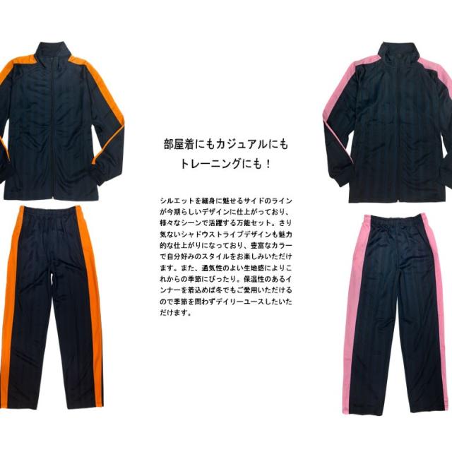 部屋着やカジュアル、トレーニングにも!シルエットを細身に魅せるサイドのラインが今期らしいデザインに仕上がっており、