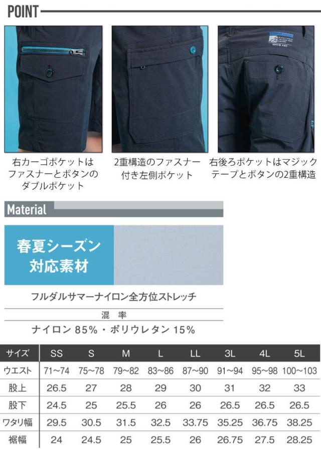 アイズフロンティア ナイロン全方位ストレッチハーフパンツ 3673 春夏作業服 2WAY