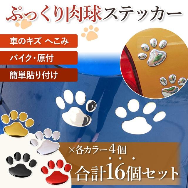 肉球ステッカー 大容量 16枚 傷 凹み 隠し ステッカー シール 肉球 かわいい 自転車 バイク 車 スクーター シルバー レッド ブラック イエロー 子供 大人 可愛い agesugi_ssp