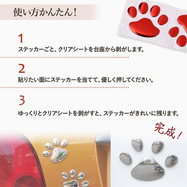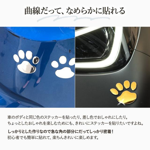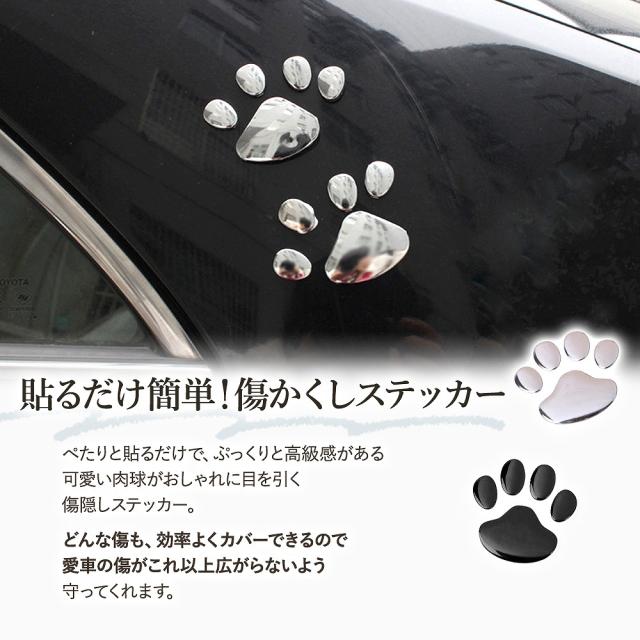 ぺたりと貼るだけで、ぷっくりと高級感がある可愛い肉球がおしゃれに目を引く傷隠しステッカー。