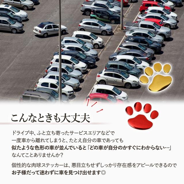 | 商品の説明 | ぺたりと貼るだけで、ぷっくりと高級感がある可愛い肉球がおしゃれに目を引く傷隠しステッカー。 どんな傷も、効率よくカバーできるので愛車の傷がこれ以上広がらないよう守ってくれます。 メタル感があって高級感を漂わせつつも、ぷっくりとかわいい肉球デザイン。 1つあればとっても大活躍する傷かくしステッカーを、なんとお得な16個セットでお届け。 まとめ買いしておいて車に忍ばせておけば、急な傷にだって対応可能◎ ●使い方 1. ステッカーごと、クリアシートを台座から剥がします。 2. 貼りたい面にステッカーを当てて、優しく押してください。 3. ゆっくりとクリアシートを剥がすと、ステッカーがきれいに残ります。 車のボディと同じ色のステッカーを貼ったり、差し色でおしゃれにしたり。 ちょっとしたおしゃれを楽しむためにも、きれいにステッカーを貼りたいですよね。 しっかりとした作りなので急な角の部分にだってしっかり密着! 初心者でも簡単に貼れて、楽ちんきれいに楽しめます。 |