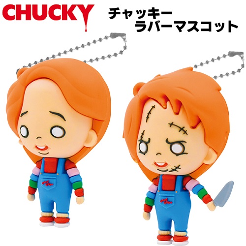 チャッキーのデザインは2タイプ、ボールチェーン付。
