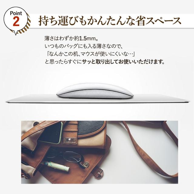 パソコンと一緒に持ち運べて、いつもの作業台がすぐに使える快適手軽なマウスパッドです◎