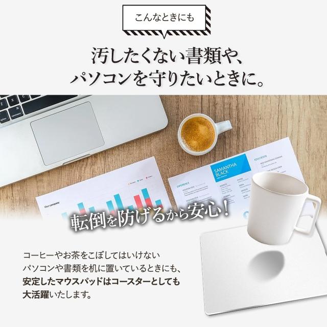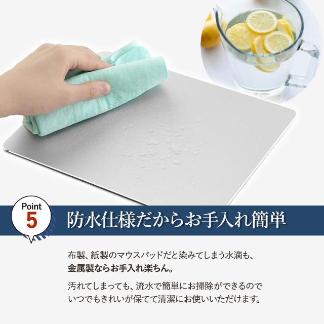 布製、紙製のマウスパッドだと染みてしまう水滴も、金属製ならお手入れ楽ちん。