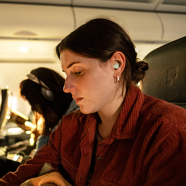 遮音性の高い高性能イアープラグ(耳栓)があれば、騒がしい機内、混雑した電車やバス、