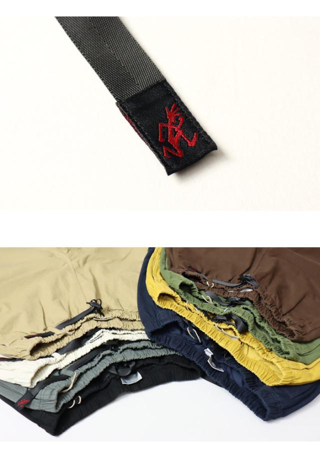 180度の開脚を可能としたガセットクロッチ、片手で調整できるウェビングベルト&イージーウェスト。1980年代、クライマーとしての体験をもとに、クライマーが欲しい機能をすべて具現したGRAMICCIの代名詞でもあるオリジナルショーツです。シルエットやディテールを現代のニーズに合わせアップデートしています。耐久性が高く、ハリコシのある、激しい動きにも耐えるオーガニックコットン使用のコットンツイルを使用し、雰囲気のある表情に染め上げています。