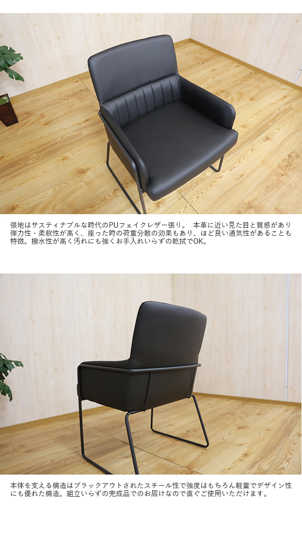 ダイニングチェア 【1脚単品】 ブラック色/全2色 合成皮革、スチール脚 幅59×奥行き65×高さ83cm 座面高:46cm GBRZ-DC-BK 北欧 完成品 ミーティングチェア 椅子 デスクチェア 店舗用にも