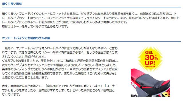 PLOT /EFFEX GEL-ZAB D /EHZ2837(オフロード車用)バイク用 クッション ゲルザブD オフロードバイク用にスリム&ロングな形状 ゲル量も30%アップ!