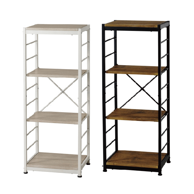 オープンラック スキマ スリム ラック スチール ラック 4段 フリーラック 幅44cm 奥行35cm 高さ111cm ラック 収納棚 棚 収納 木目 木製 スチール シンプル ブラウン ナチュラル ヴィンテージ風 一人暮らし 新生活