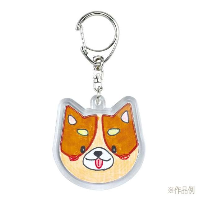 ハメパチくんキーホルダー。作品を入れてパチッ!簡単にキーホルダーができる。使用可能画材:アクリルガッシュ、ポスターカラー、水彩絵具、油性ペン、水性ペン、色鉛筆。