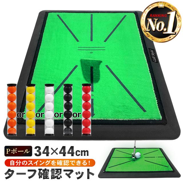 ダフりチェック ゴルフマット 34×44cm Pボールセット ターフ跡が確認できる ゴルフ 練習 マット 素振り アイアン スイング 跡がつく ショットマット 練習用 ゴムマット ゴルフボール