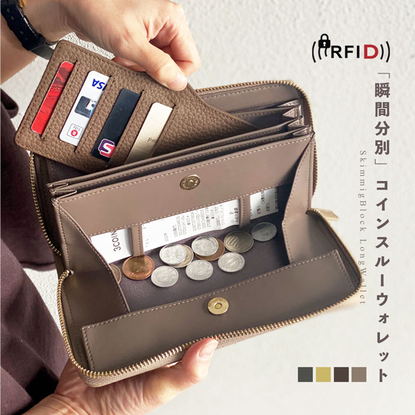 【今なら54%オフ!2,480円】【本革カードケースとセット!】 長財布 牛革 スキミング防止 レシート 自動振り分け 小銭入れBOX型 通帳 コインスルー 式 パスポート 財布 大容量 便利 使いやすい サブ財布 家計管理 レディース メンズ プレゼント ギフト