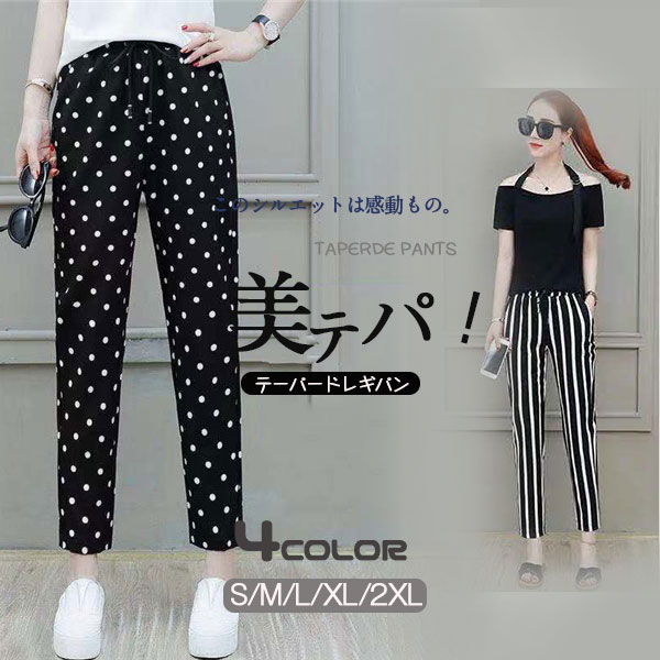 【本日の激短SALE】テーパードパンツ レディース ドット柄 ボーダー柄 チェック柄 きれいめ 大きいサイズ 体型カバー ボトムス ストレッチパンツ 美脚 シンプル
